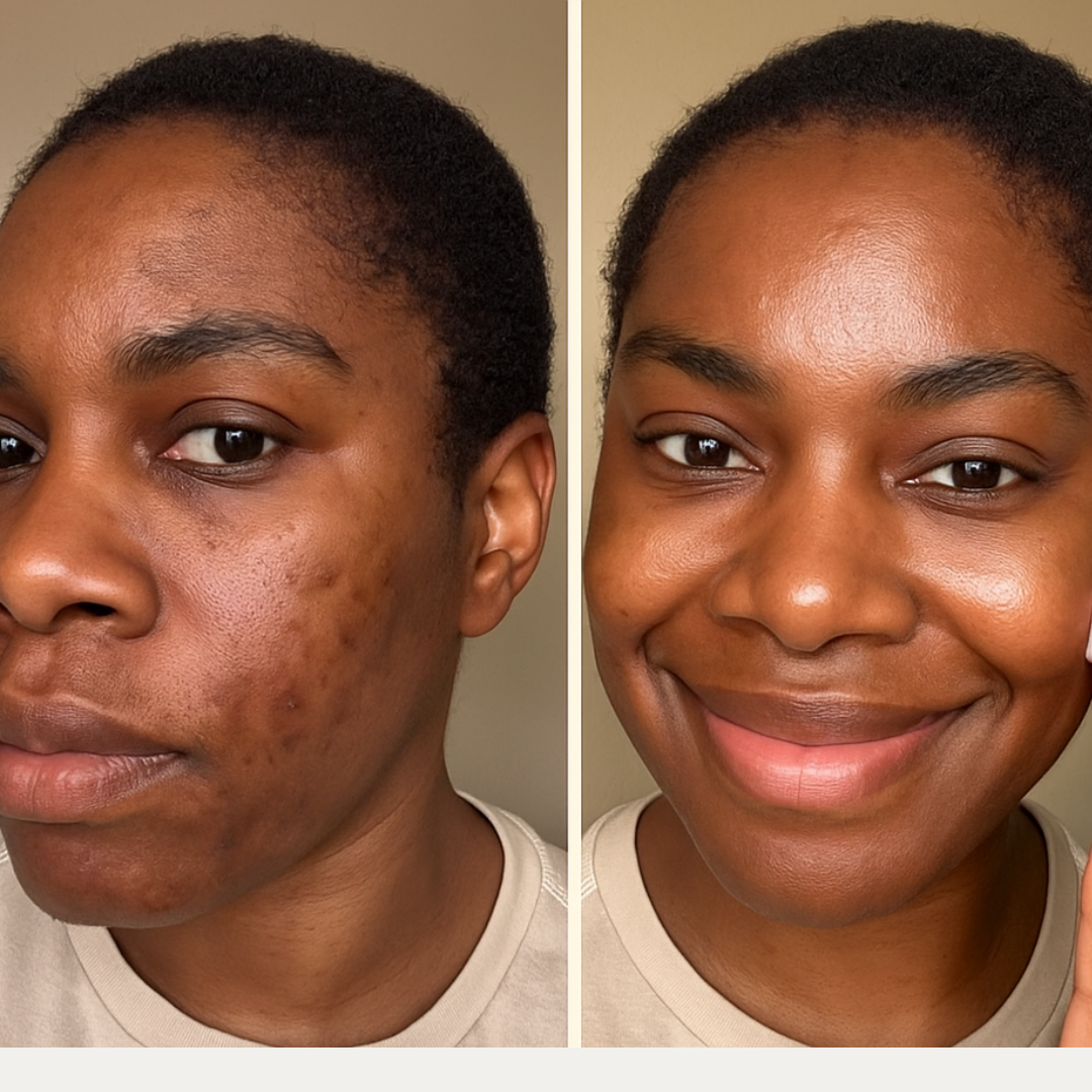 Teint plus uniforme • taches éclaircies • glow visible • peau apaisée